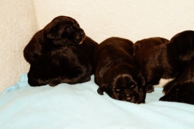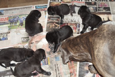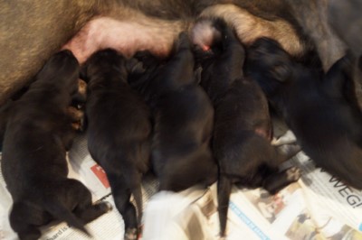 Op 1 november 2015 zijn er 7 prachtige zwarte pups, 5 reutjes en 2 teefjes, geboren uit de volgende combinatie: